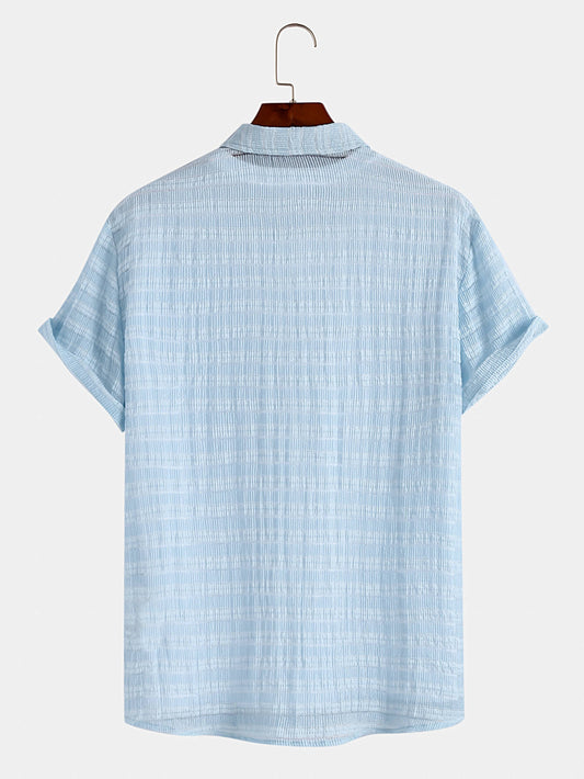 VARENO Mavi Kısa Kollu Keten Gömlek