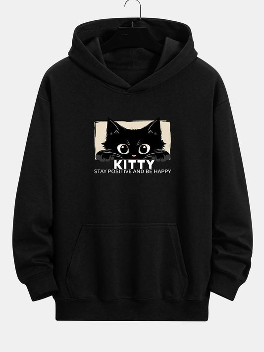 VARENO Black Cat Printed Hoodie
